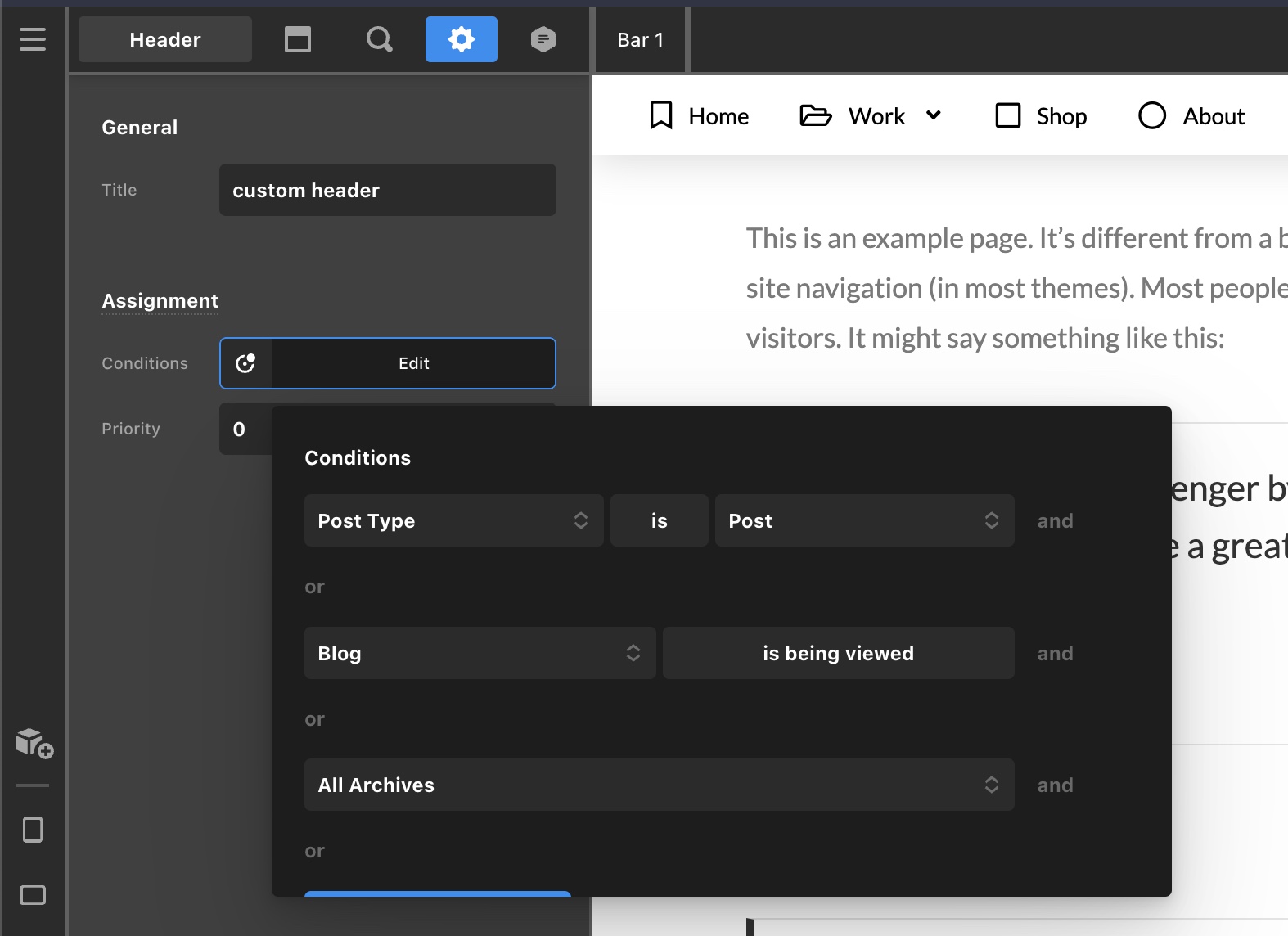 3.) And then you can assign the newly duplicated header to single posts and other blog archive pages.