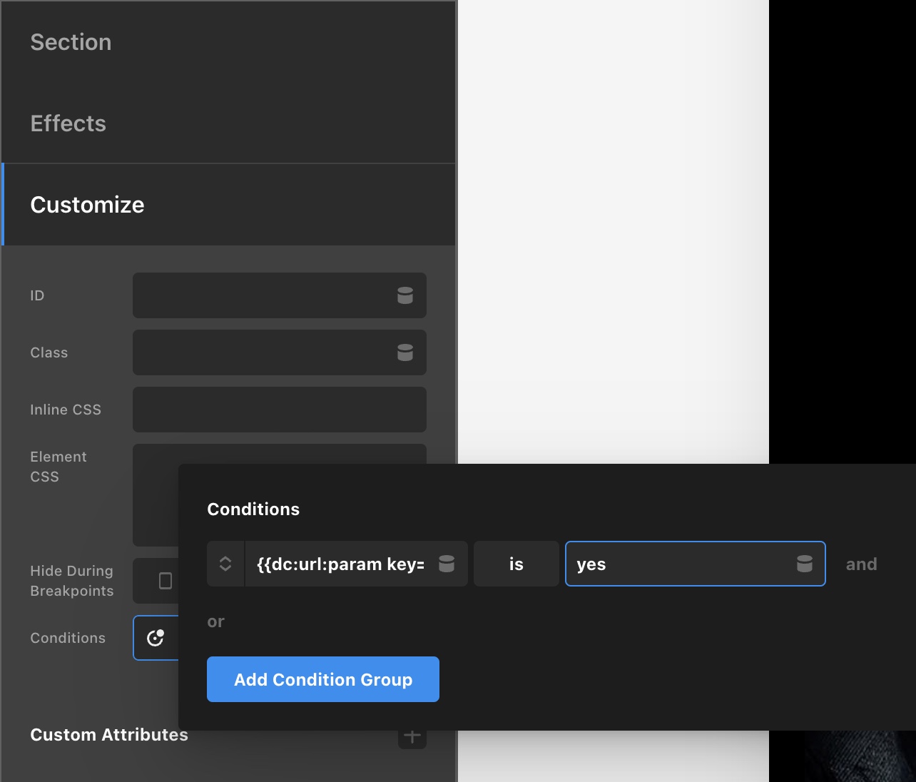 I was hoping to be able to leverage the layout builder and some ACF magic to achieve varying content/layouts based on where traffic is coming from (e.g. a landing page visit via SEM vs an onsite page visit) but still retain one single post/page/whatever. Scrolling through the layout conditions, it doesn’t look like there are any sort of string or dynamic content input where I can set this up.