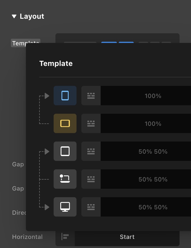 By clicking the word “Template”, you should be able to see the responsive styling: