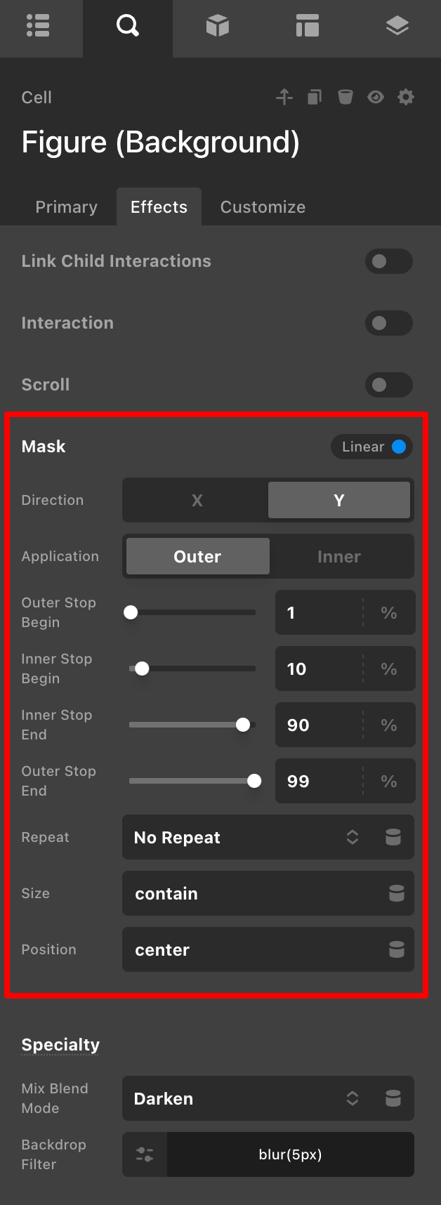 I recommend using the Effect Module’s mask options. On your Figure element, go to Effect -> Mask -> Linear and apply the linear mask option.