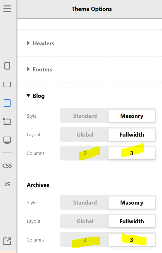 There are only two options available for the Masonry layout. And there is no way to input any numbers in this.