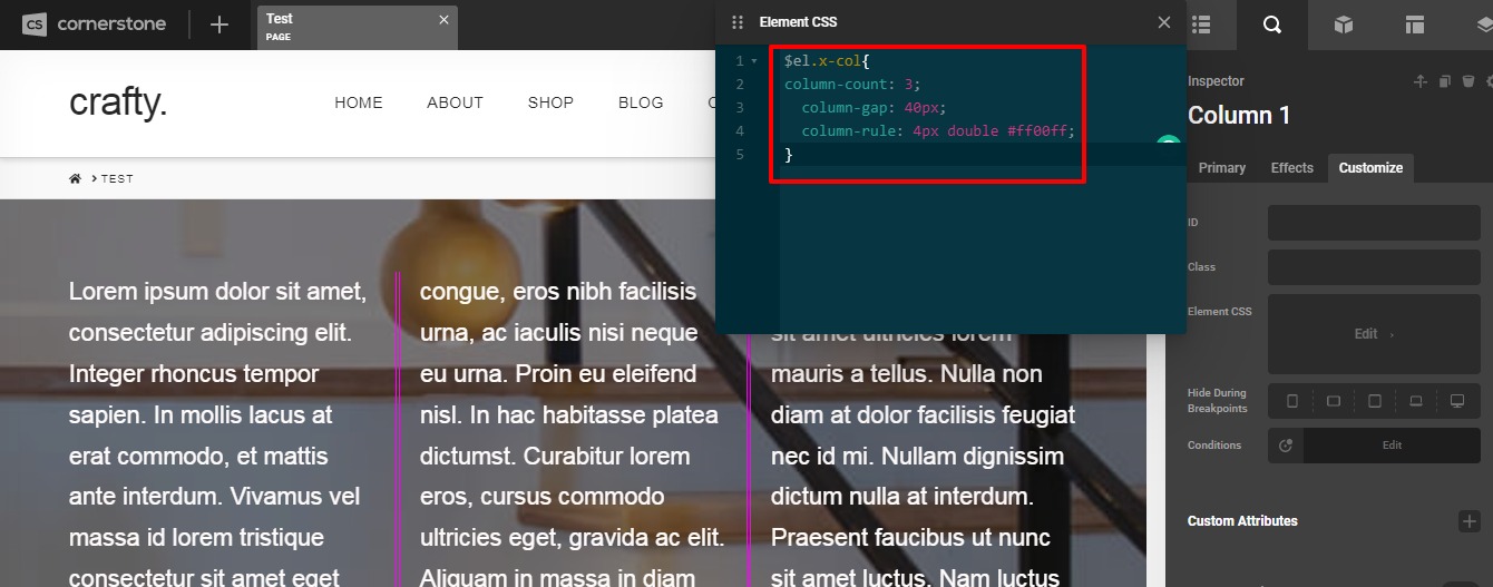 I can see that the background css works but for some reason the column-rule isn’t working…