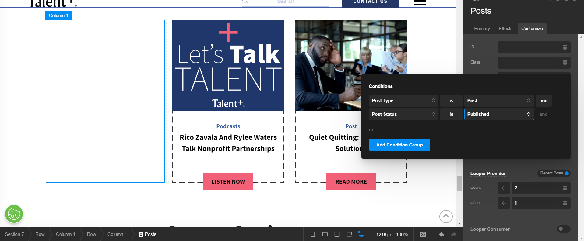 I am using “minimal post” element and trying to add a condition to only show posts that are “published” but the condition doesn’t apply, rather all the posts disappear. Can you please guide. (see column 1 in image)