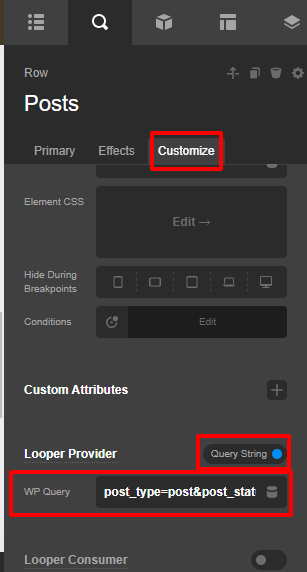 By default when the Looper Provider is set as “Recent Posts” it pulls the published posts from the post so you don’t need to add an extra condition to the posts. In case you want to have a query parameter like post type and post status, I would suggest you please set the Looper Provider as “Query string” and add this query string.