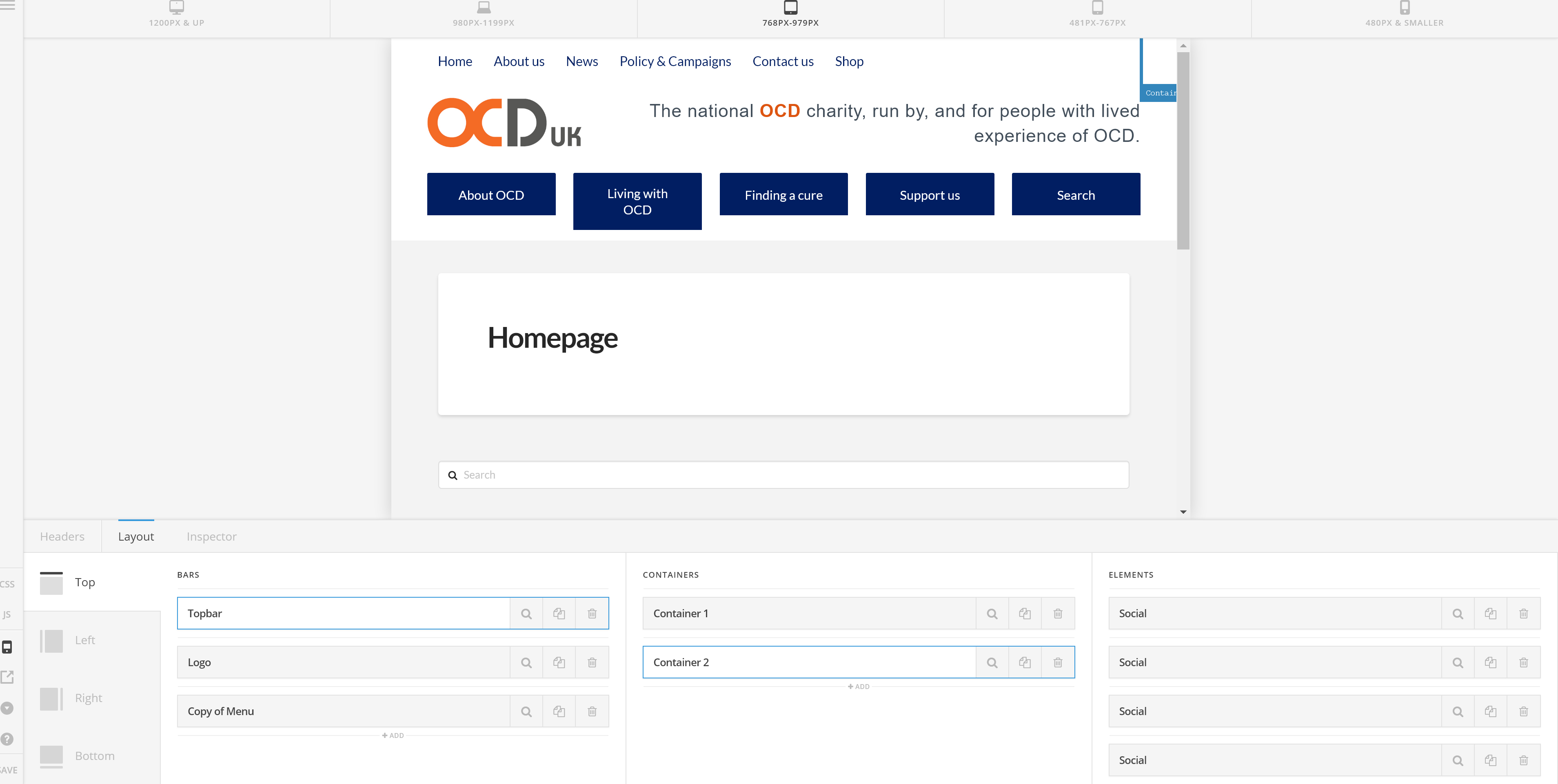 Hello, I am still trying to learn with Pro. I have an issue where a container (containing 4 social media icons and a search box) show on desktop/laptop sizes but stops showing on 768-979 even though I have it enabled to show on that size. In the header builder (with Chrome) I see this, the container is showing but with no content.