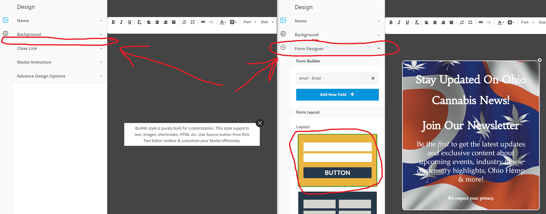 But something happened these last few months and it’s no longer populating the email entry box or the submit button in my Main & Sidebar Pop-up Modules. I don’t even see the email entry or submit button populate it in the creation wizard.