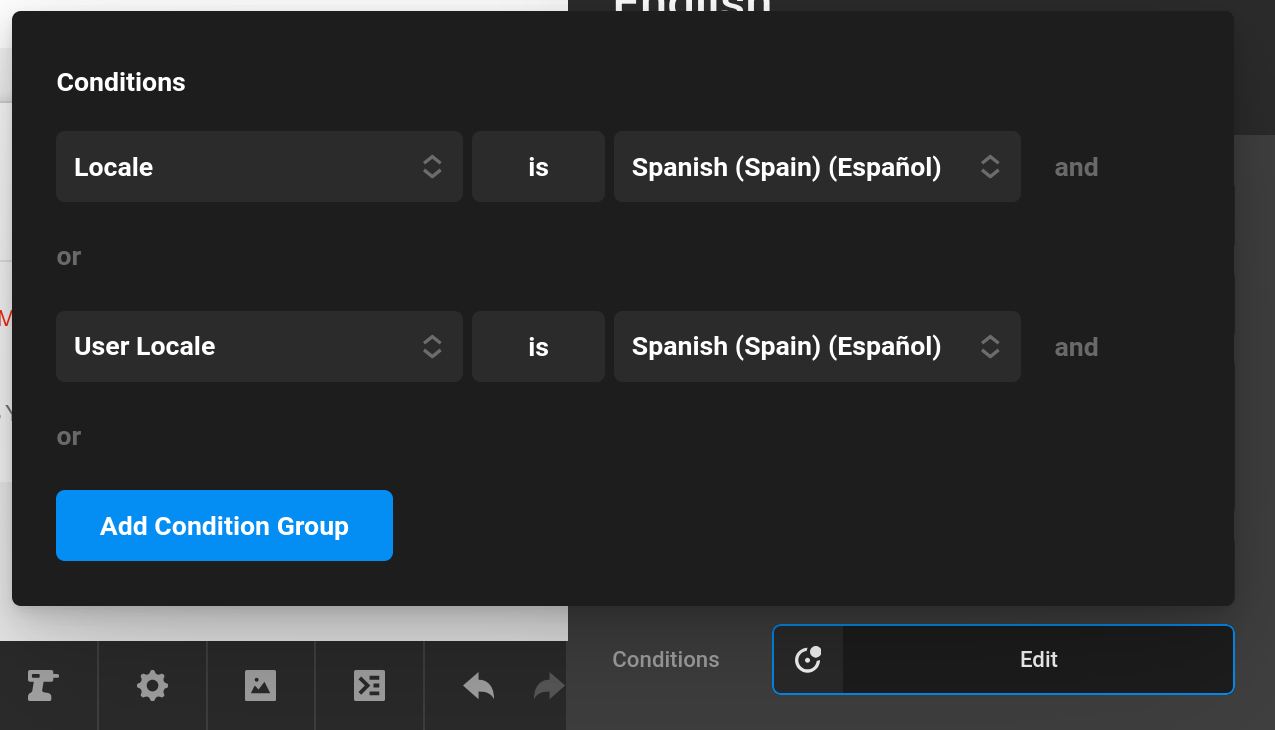 In it’s place for more advanced pages, we will have Localization Dynamic Content and Localization Conditions. Using one page you can create completely different sections based on Conditions or Dynamic Content.