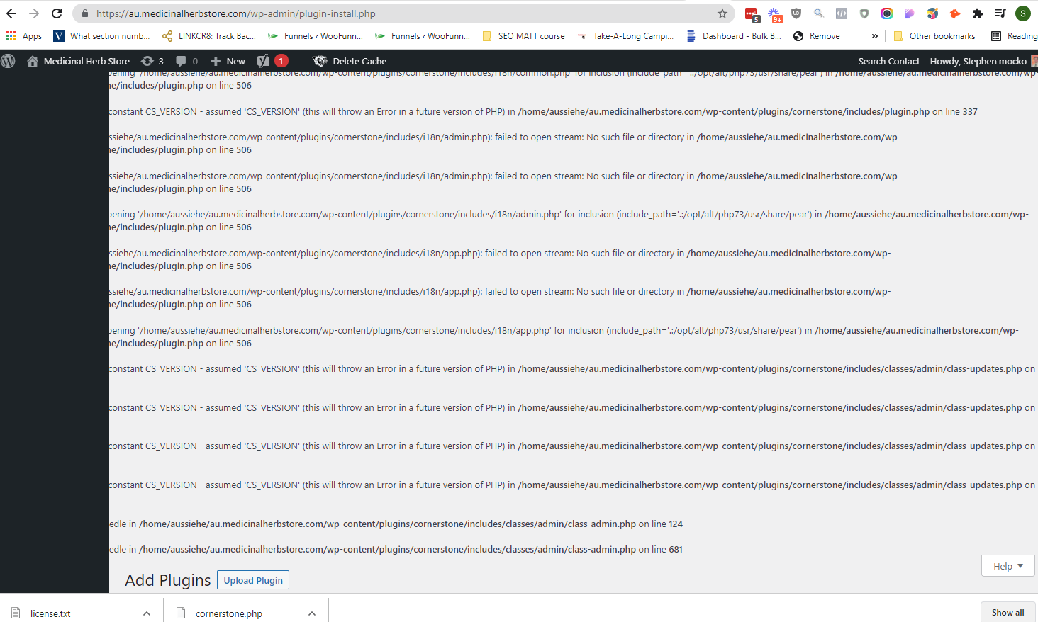 I can’t load orders from a website because cornerstone keeps blocking it. The 3rd party shipping platform, readytoship is loaded through a rest API