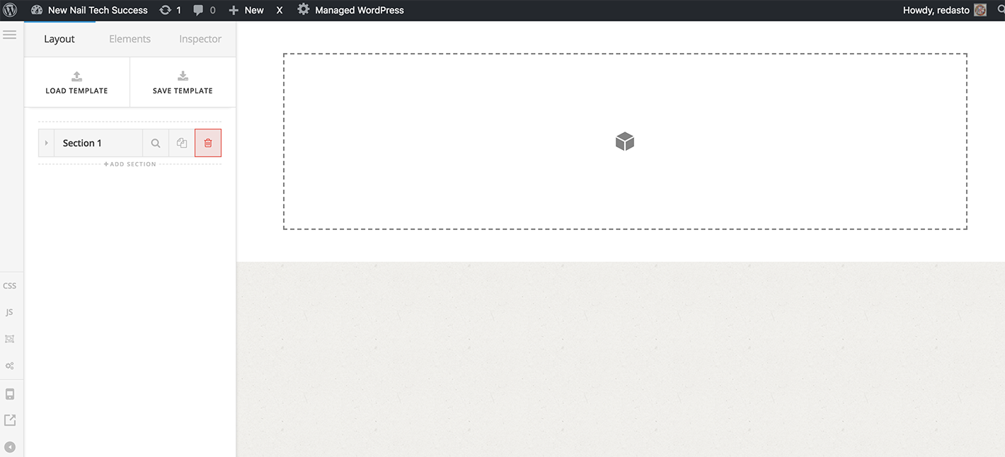 When I try to add a section I can’t do it. And my content space is very small because my header and footer is too big.