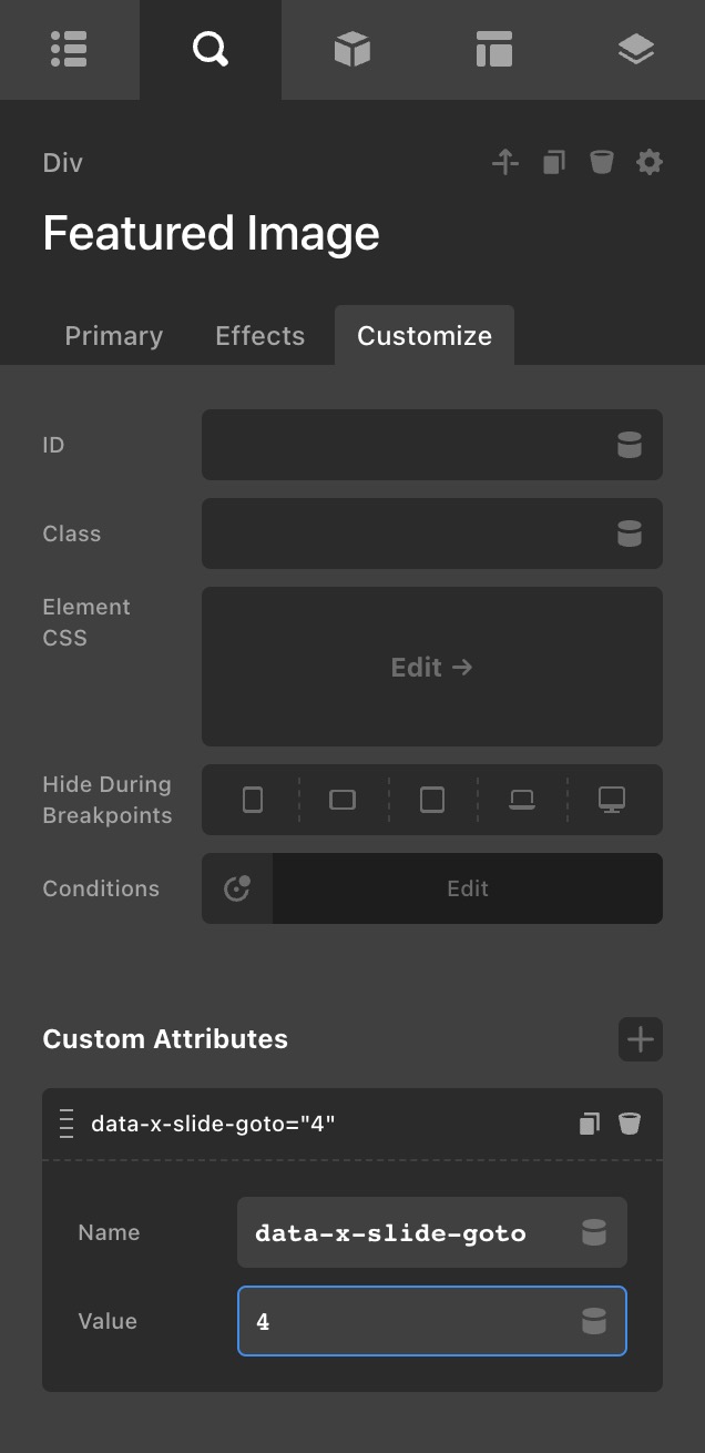 Clicking on the thumbnail in the navigation slider (“1” below) does not show the featured image in the main slider.