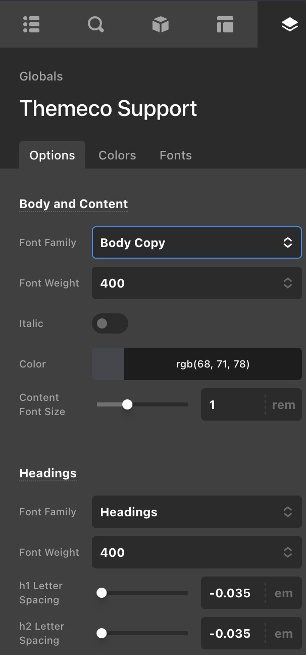 Thanks for writing in! Please go to Cornerstone > Globals > Options > Typography and make sure that the Body and Content as well as the Headings have been assigned to a font family.