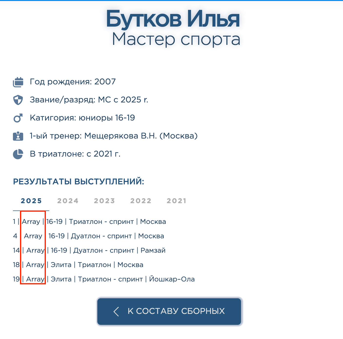 There I have Tab Labels which pull up the years for “athlete_achievements” and set to: