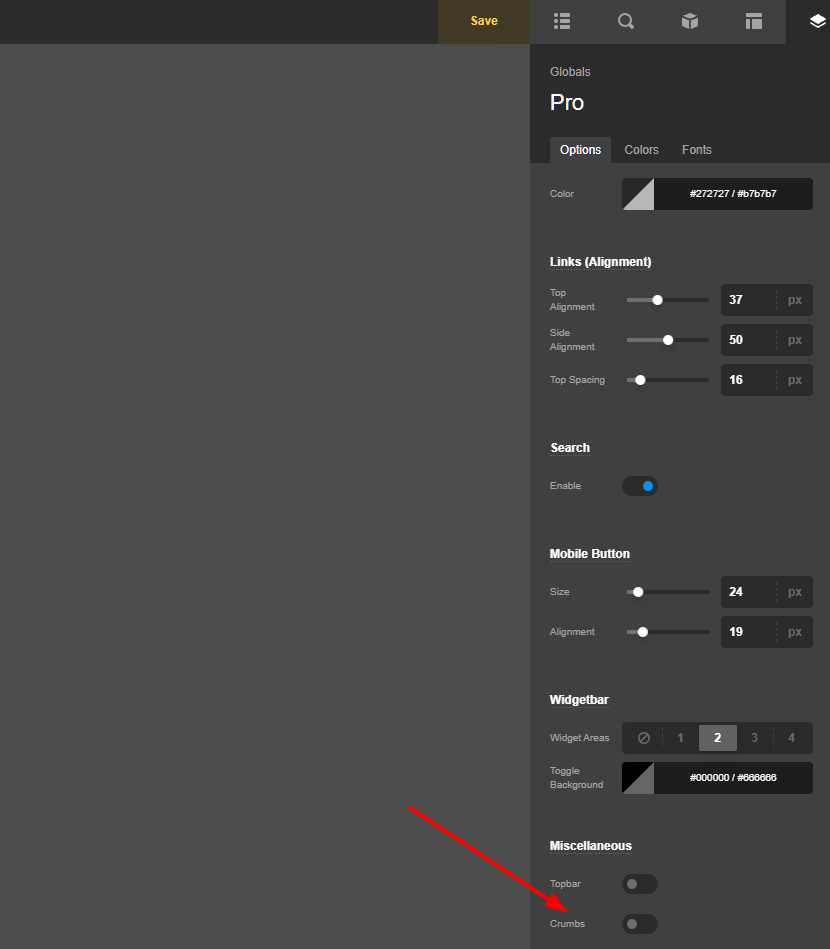 Regretfully there is no option for that but you can achieve it by using the custom CSS code, you can add this custom CSS code to the global CSS.