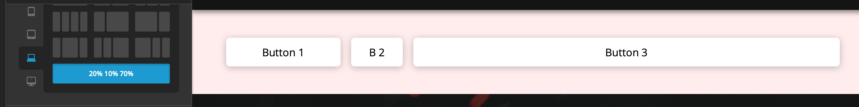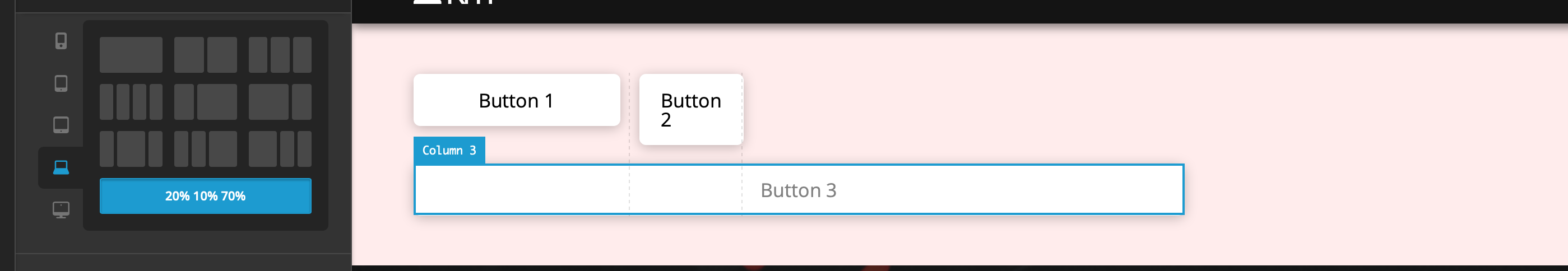 For example, in this screenshot you can see the column percentage values on the left, and how the button text within Column 2 is forced to wrap to a second line, and how that pushes Column 3 down a level.