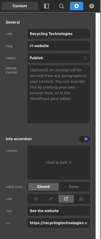 I even managed to make sure that the values are populated from the post on load, using the cs_content_load_settings filter and grabbing the data from the Advanced Custom Fields data that was set in the WordPress editor.