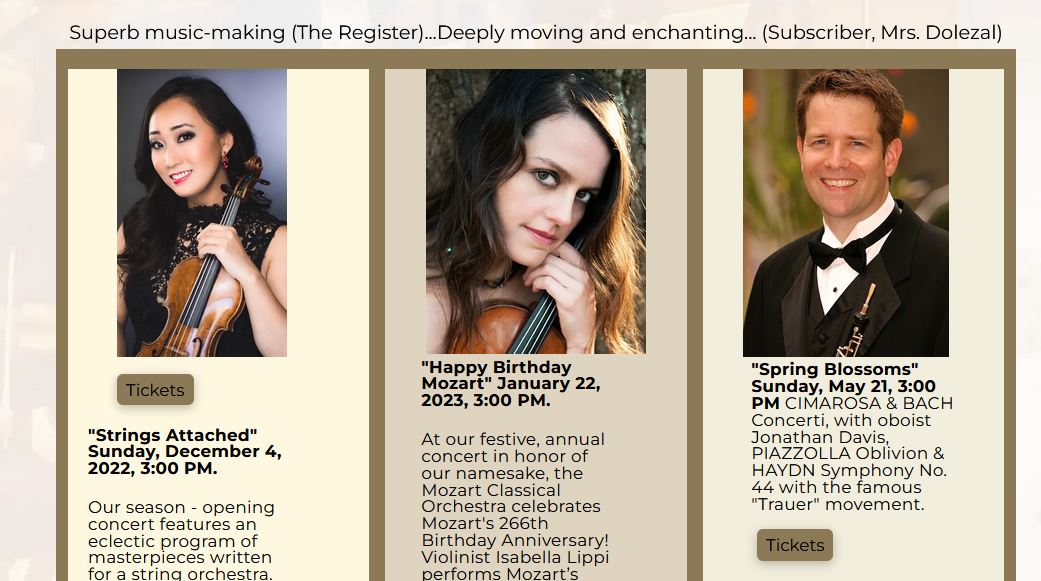 Hello again. On page https://mozartorchestra.org/concerts/ I need to delete the left column. Next year I will need to add it back. Please detail the removal and the addition process. Thank you!