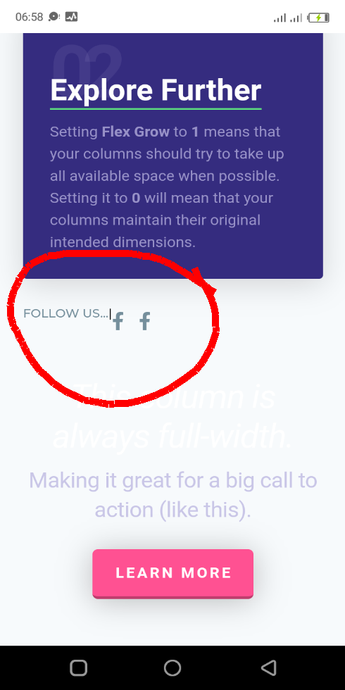 I want the “FOLLOW US…” text to be in a different line in the third container.
