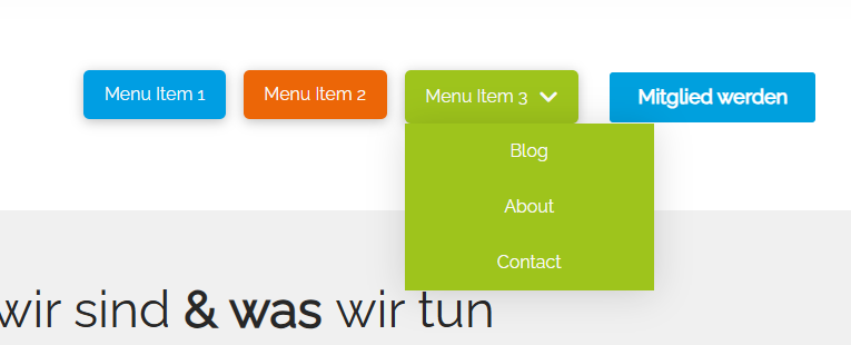Menu item 2 is orange on hover --> page with orange accents / orange primary color / buttons orange etc.