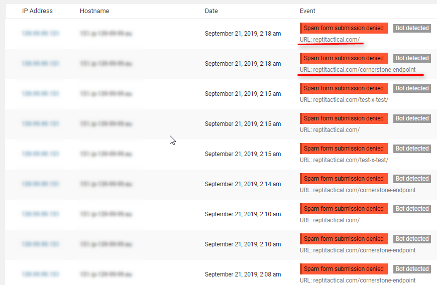 Here’s the culprit, the WP Cerber Security, Antispam & Malware Scan plugin is blocking the /cornerstone-endpoint/ because it is detecting it as if it is a bot.