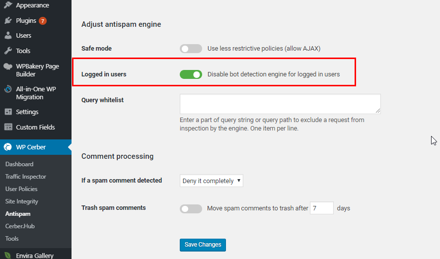 One way of resolving it is to enable the Disable bot detection engine for logged in users option under WP Cerber > Anti Spam