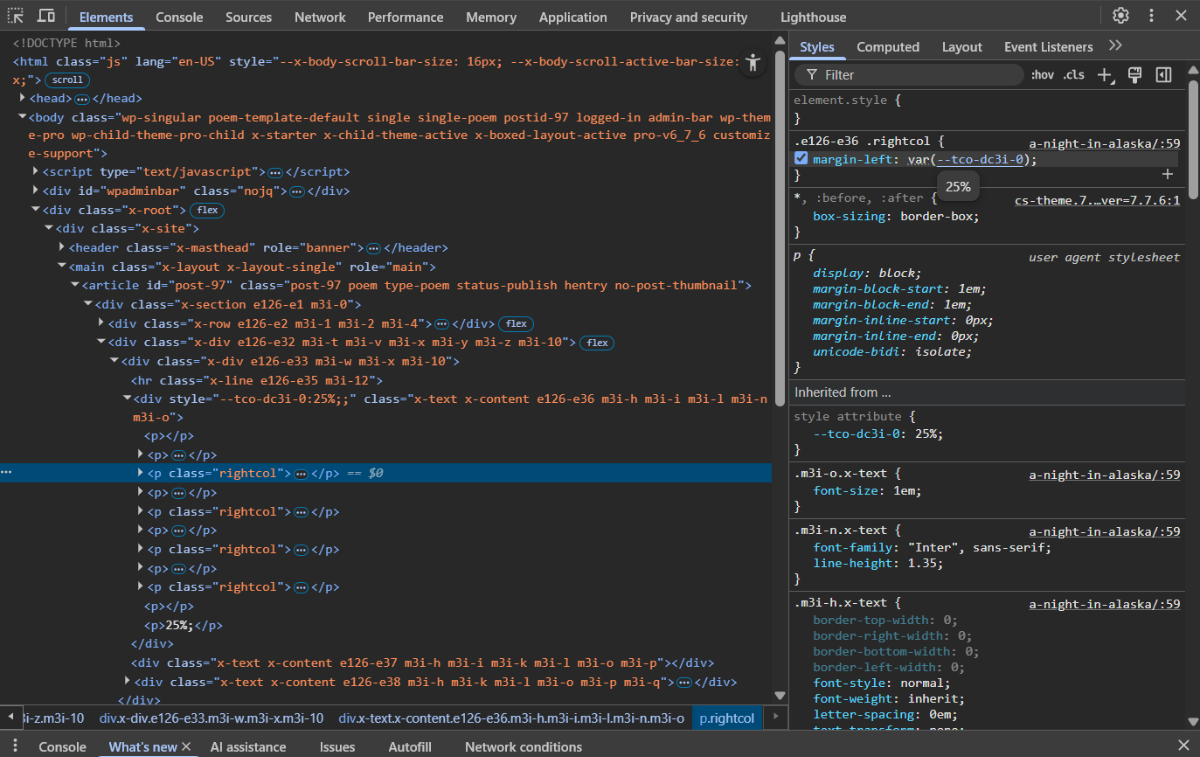 I have one poem defined with this approach, here: https://davidd937.sg-host.com/poem/a-night-in-alaska/