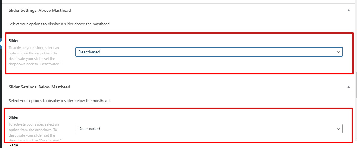 In case you want to remove the slider you need to go to the Page —>Homepage —>Edit—>Page settings. You can select “Deactivated” to remove the slider or you may select the slider from the select box.