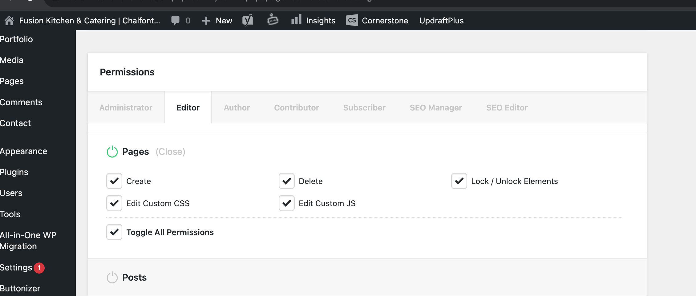My client has the website role of an “editor” on wordpress. She is unable to edit certain pages in the html field and the error states - “you do not have permissions to inspect this element type” - also enclosing enclosing an image…can you tell me how we can fix this so my customer can make edits…I can also send you the wordpress credentials if needed…thank you!