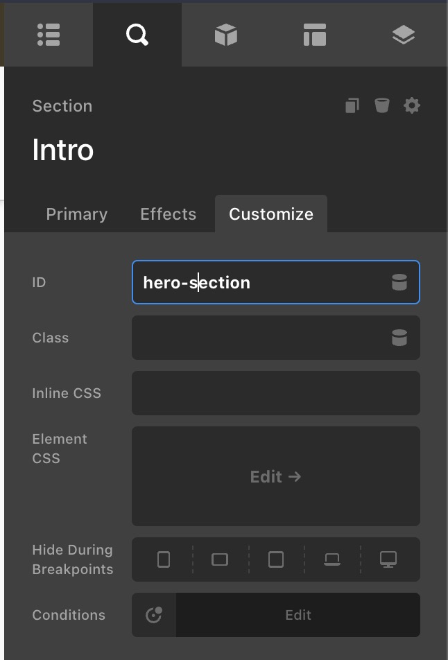 You can place the CSS in the Custom Code area assuming that you have also added a unique class or ID in your Section element.