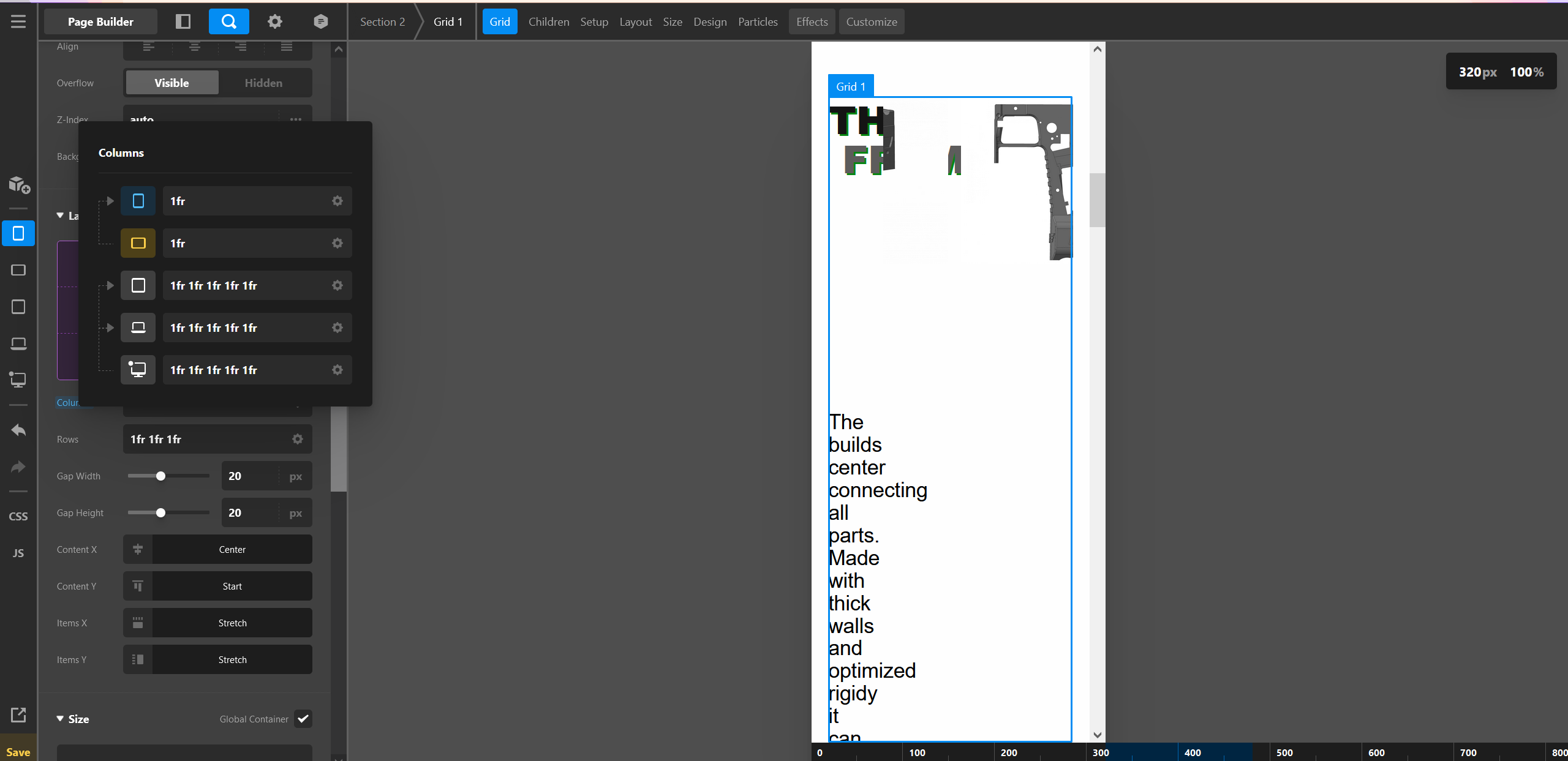 I tried using “1fr” with 3 rows, but this sadly won’t work and the elements are still next to each other.