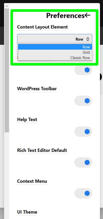 I have checked the page builder and found the problem you mentioned in your first post. It is due to the Classic Row having been selected as Content Layout Element from the Preferences option as shown in the given screenshot.