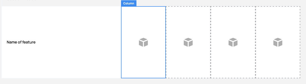 I’m creating a component which is a row containing five columns. In the first column I having a headline element and in the other four columns there will be one of four available icons. The icons are placed in the same document and are svg code inserted in four different div -> raw content and then created as component with “export component”.