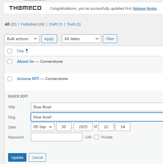 I have 2 galleries. The one named Clients works as intended but the one named Restaurants, when the image is clicked it will not open the page. I have only one page at the moment named blue-bowl but when I click the image it opens the picture instead of going to the url. In the tray it shows the correct url. I am using the slug as the url, /blue-bowl/