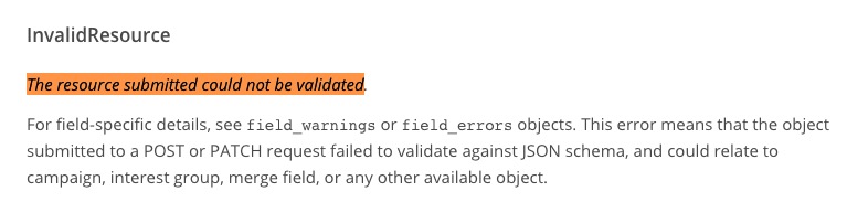 However, when I try to submit the form without making a selection i get the following error “MailChimp Error: The resource submitted could not be validated. For field-specific details, see the ‘errors’ array.”