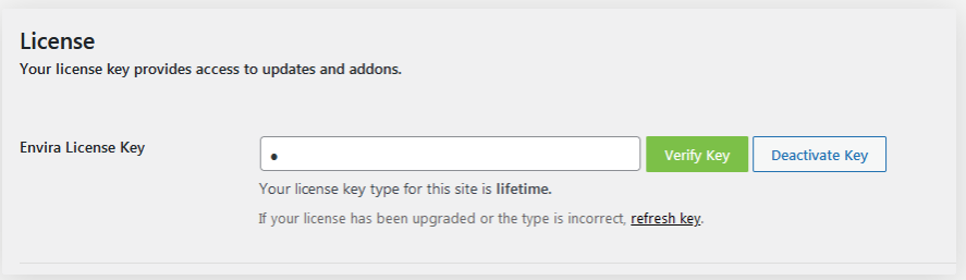 Also, when I use the code to activate the key input field, it defaults with a character already in the field (see screenshot with the one character already in the field). So, when I input my envira gallery license key, it won’t verify.
