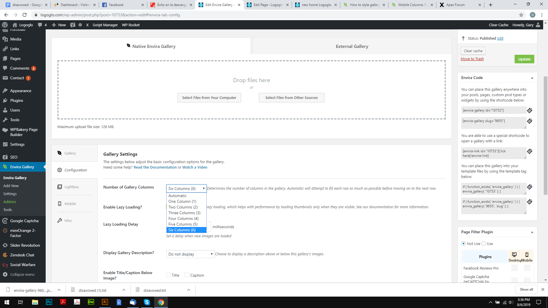 2: How do I make the gallery have 8 columns? the limit is 6 in the dropdown options: