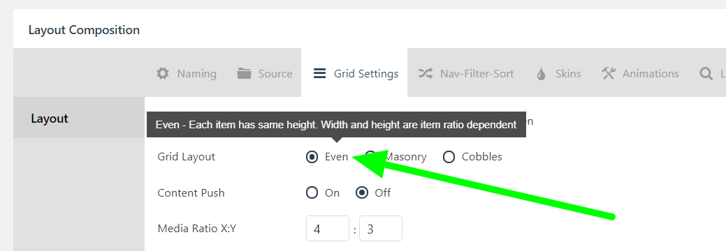 Is it possible to get all grid items in a row of “Essential Grid” to equal height (at the bottom), if the text length is different, in order to get always only the height for all elements in a horizontal row, which the highest element in this row demands?