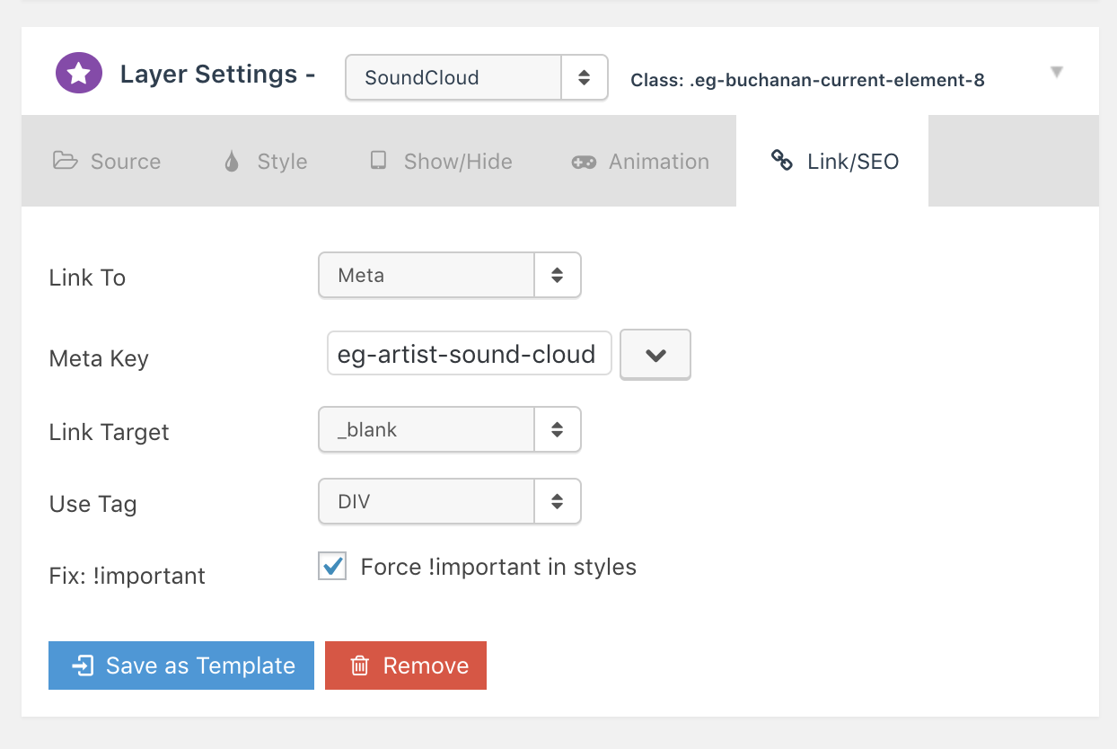 Please edit your soundcloud layer, on the Link/Seo tab, you have to setup like this screenshot below: