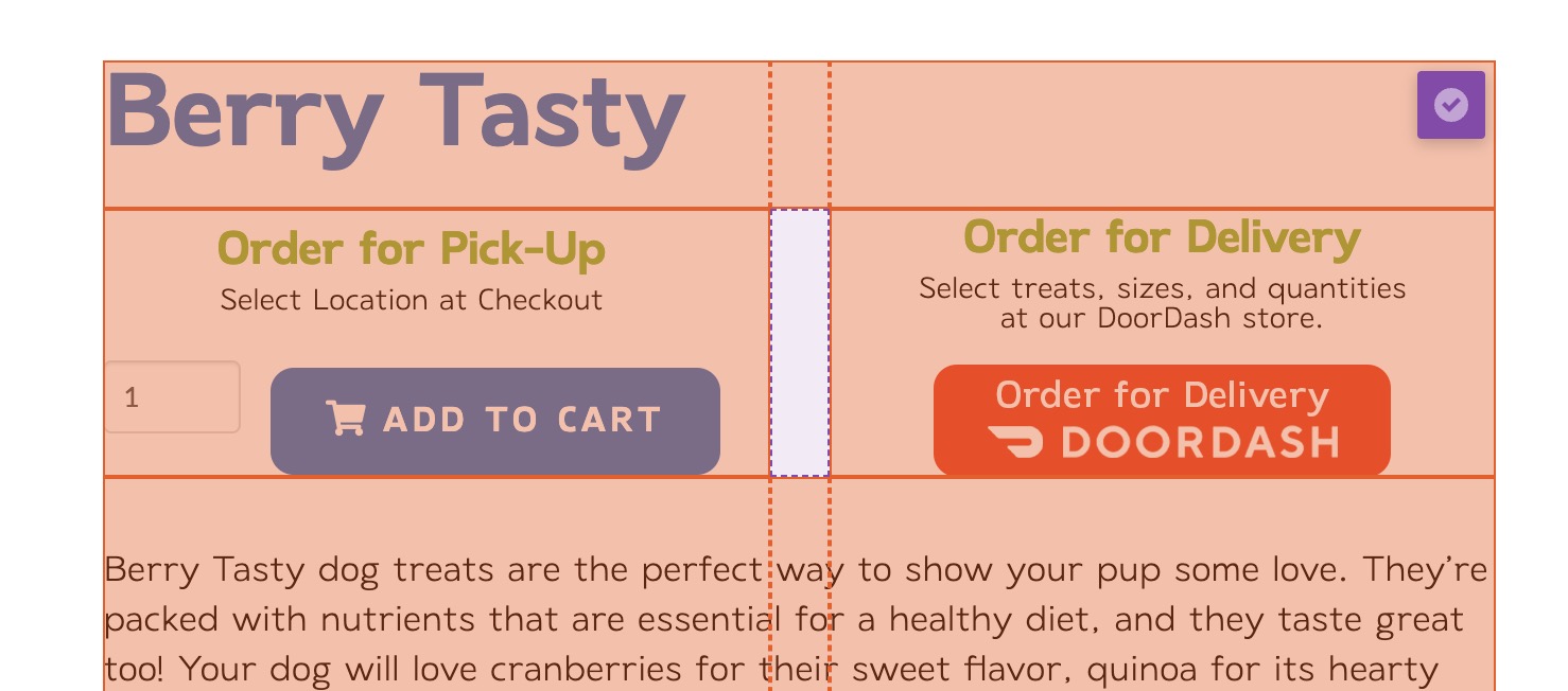 I have created a single product layout page and I am using a grid element to line up content, especially the two buttons.