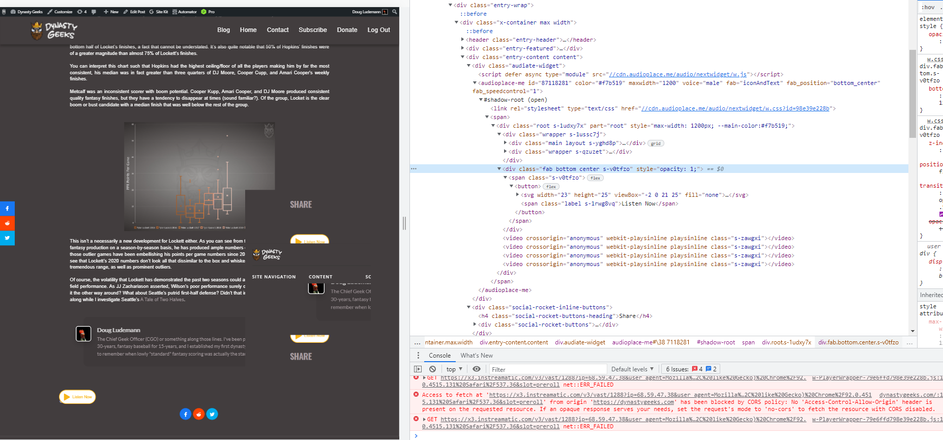 However, the FAB is obscured by the background color of the content div (as well as the footer which isn’t really that big a deal tbh) (see attached image)