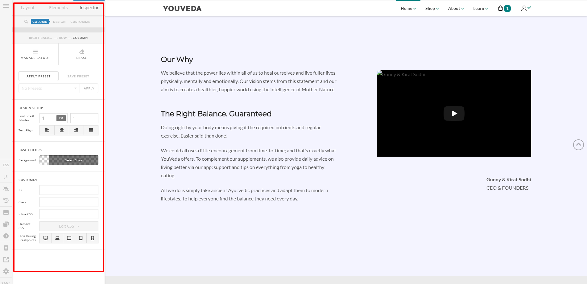 You should see the Column’s Fade Effect option after that.