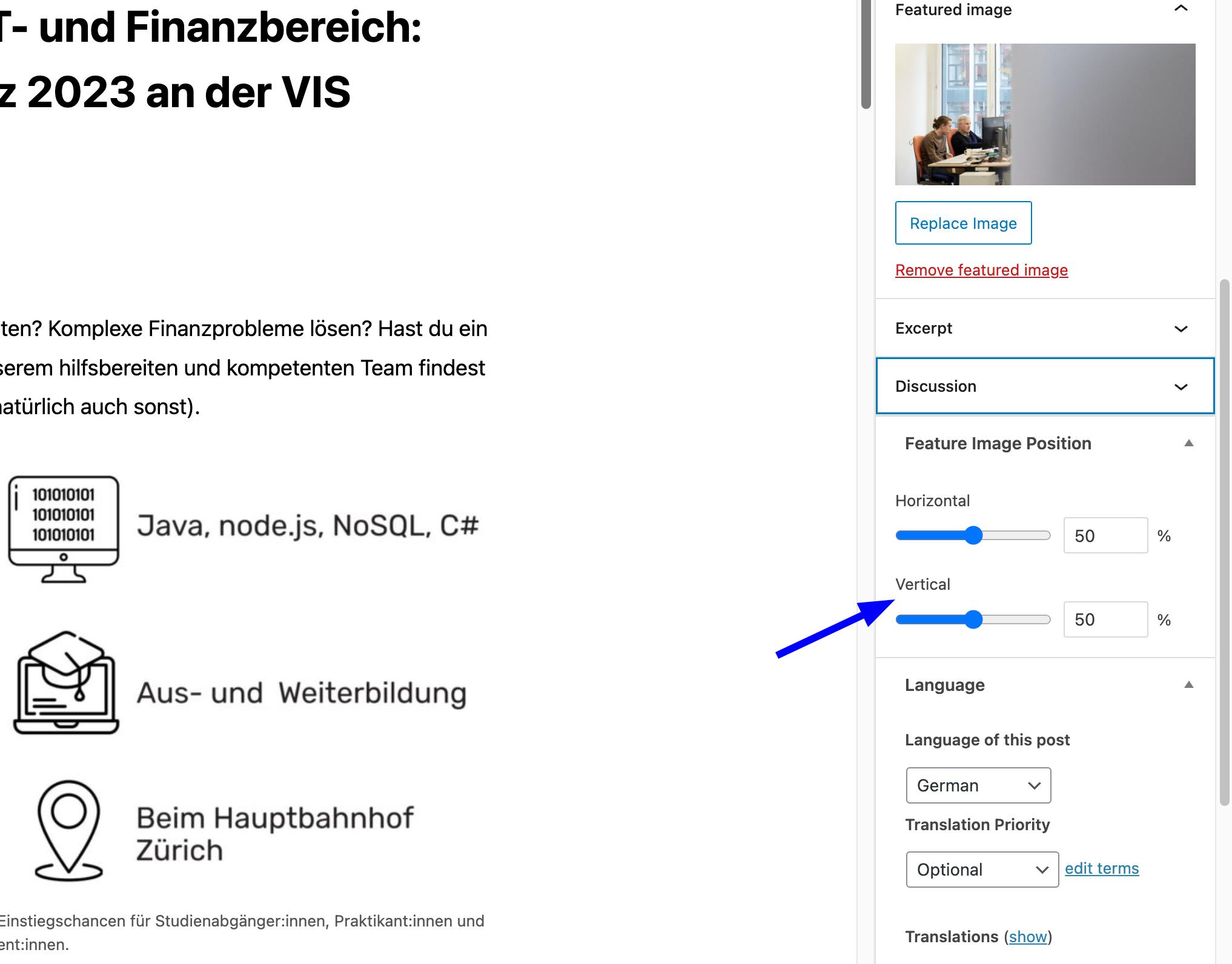 Then it would be easy to add a positioning feature in the Gutenberg Editor for the Featured Image via ACF (see second screenshot) to change the visible area of an image.