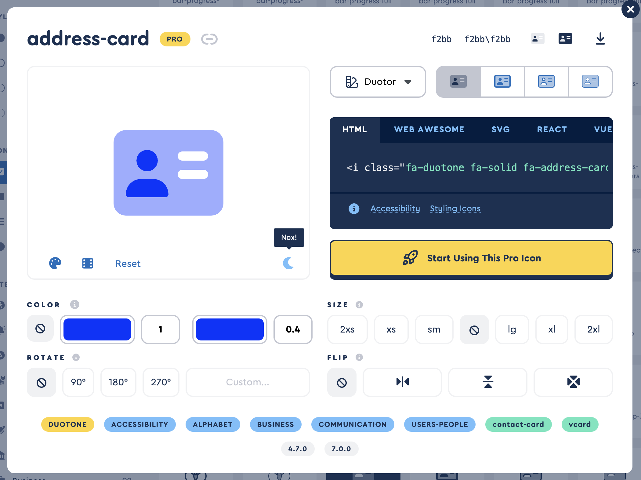 I realize full support would mean updating the icon controls to handle two colors (plus opacity for each). But a quick win might be just enabling the icons with the current single-color control – as Font Awesome handles this gracefully, with both layers inheriting the same color but at different opacities (primary at 100%, secondary at 40% by default).