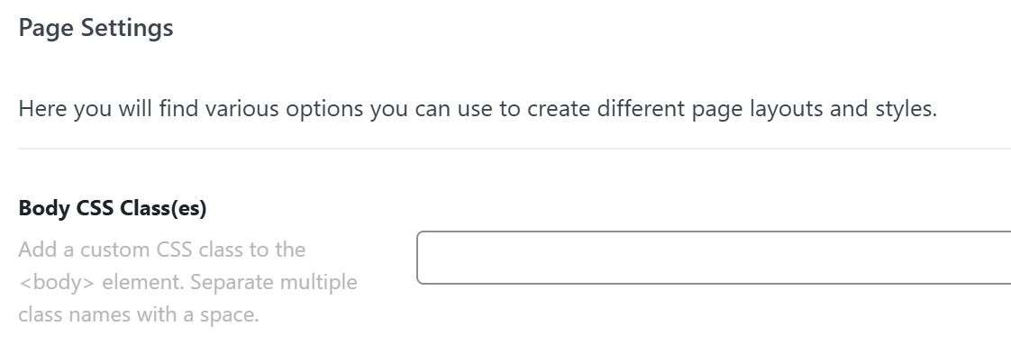 WordPress generates descriptive body classes automatically, but there’s no way to add intentional classes from within Cornerstone. Being able to tag a page with classes like “dark-theme” directly in the builder would eliminate the need for ACF fields paired with body_class filters. -