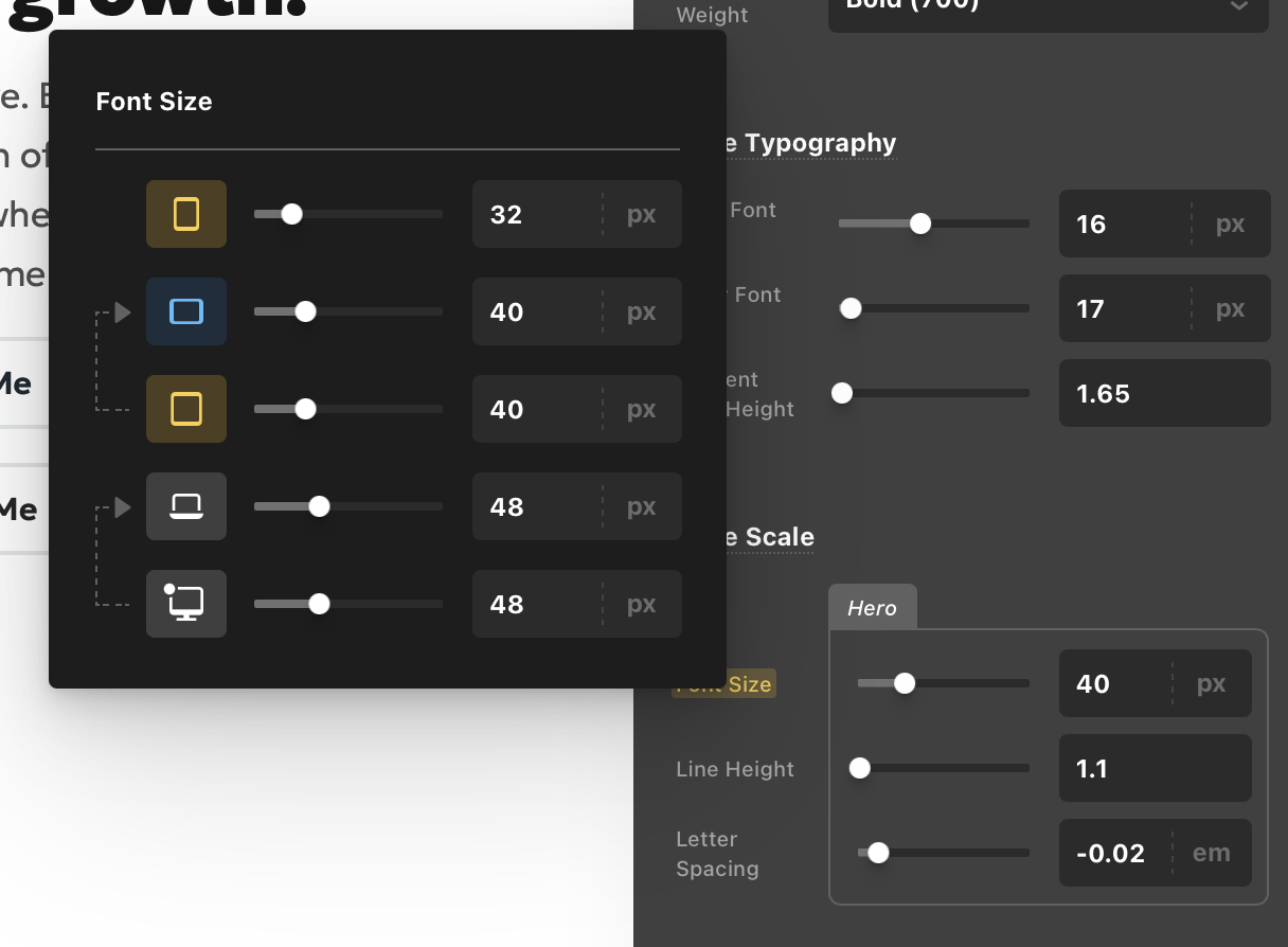 - i.e. I’m building controls for all the styling of h1-h6, and want to put their responsive font sizes, line height, tracking, etc. in its own pop up, rather than having exposed groups for all of them.