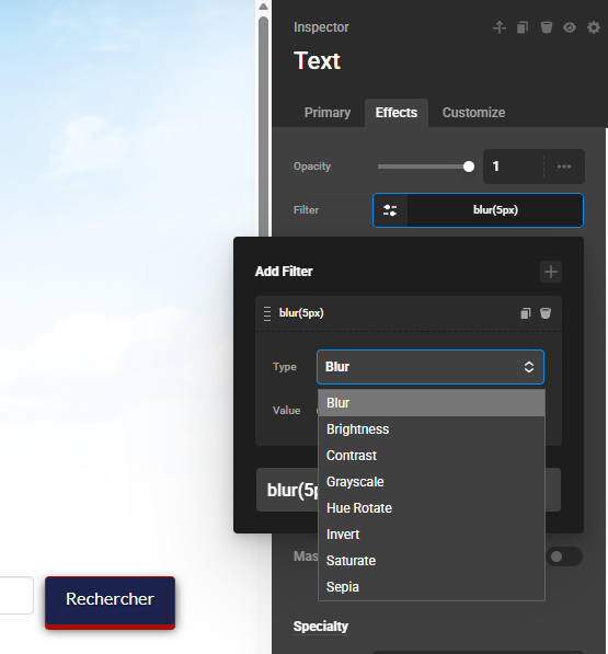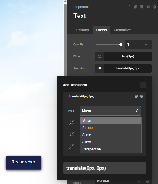 For some time now, after an update, I no longer have access to the filter and transform selection in the effects. It only shows Blur or Translate . I can’t choose another one unless I type it manually.
