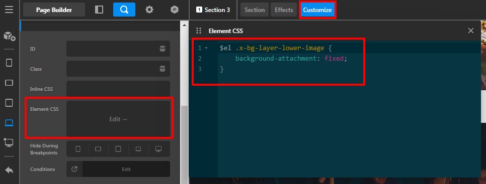 Go to the Section —>Customize -->Element CSS and add this custom CSS code.