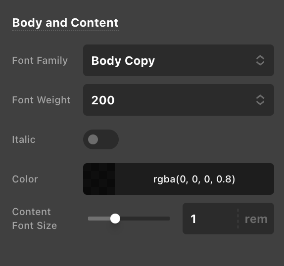 when i define the font color in the global theme settings fonts (body and content) as