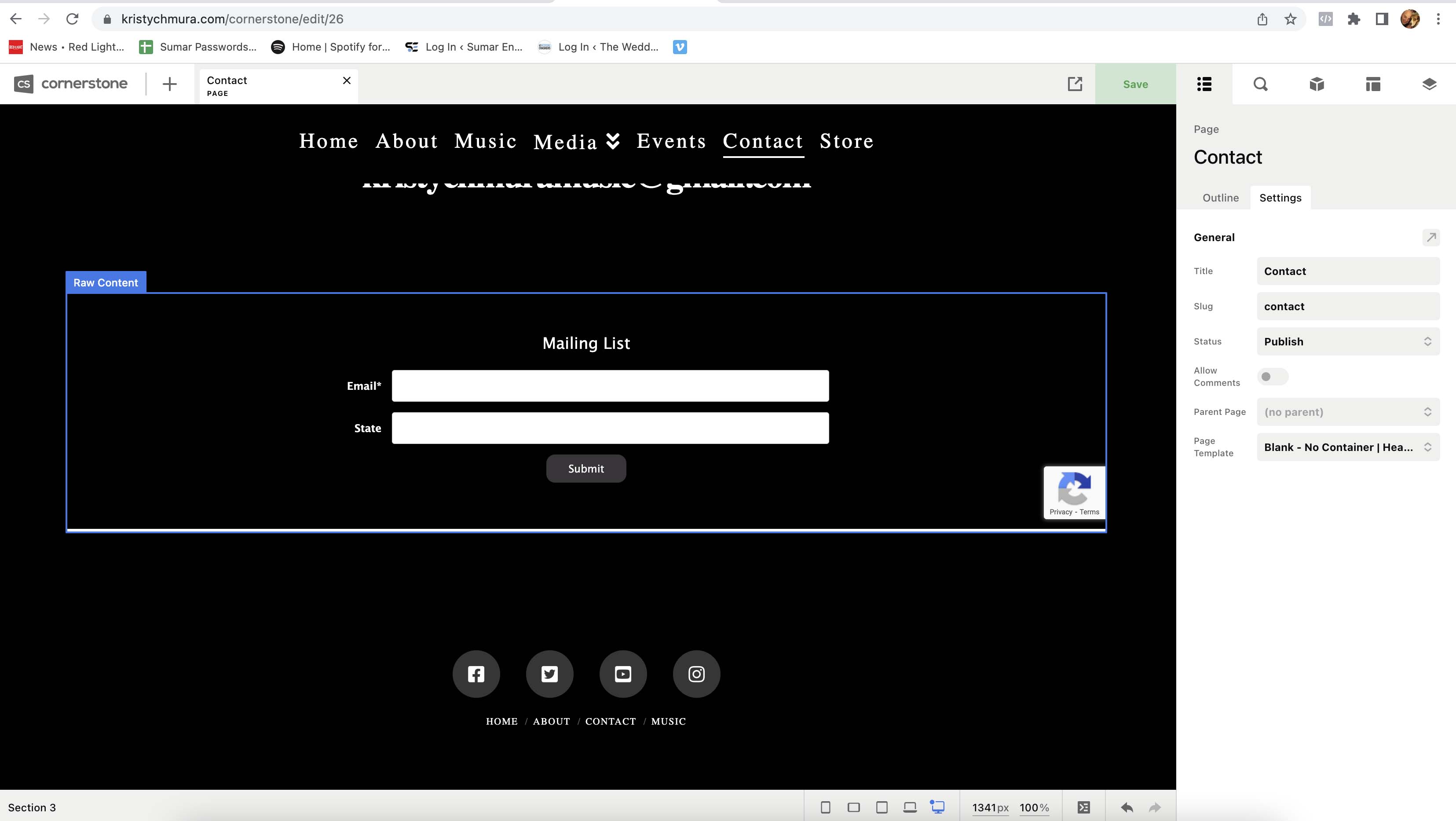 as you can see the published page is missing the footer