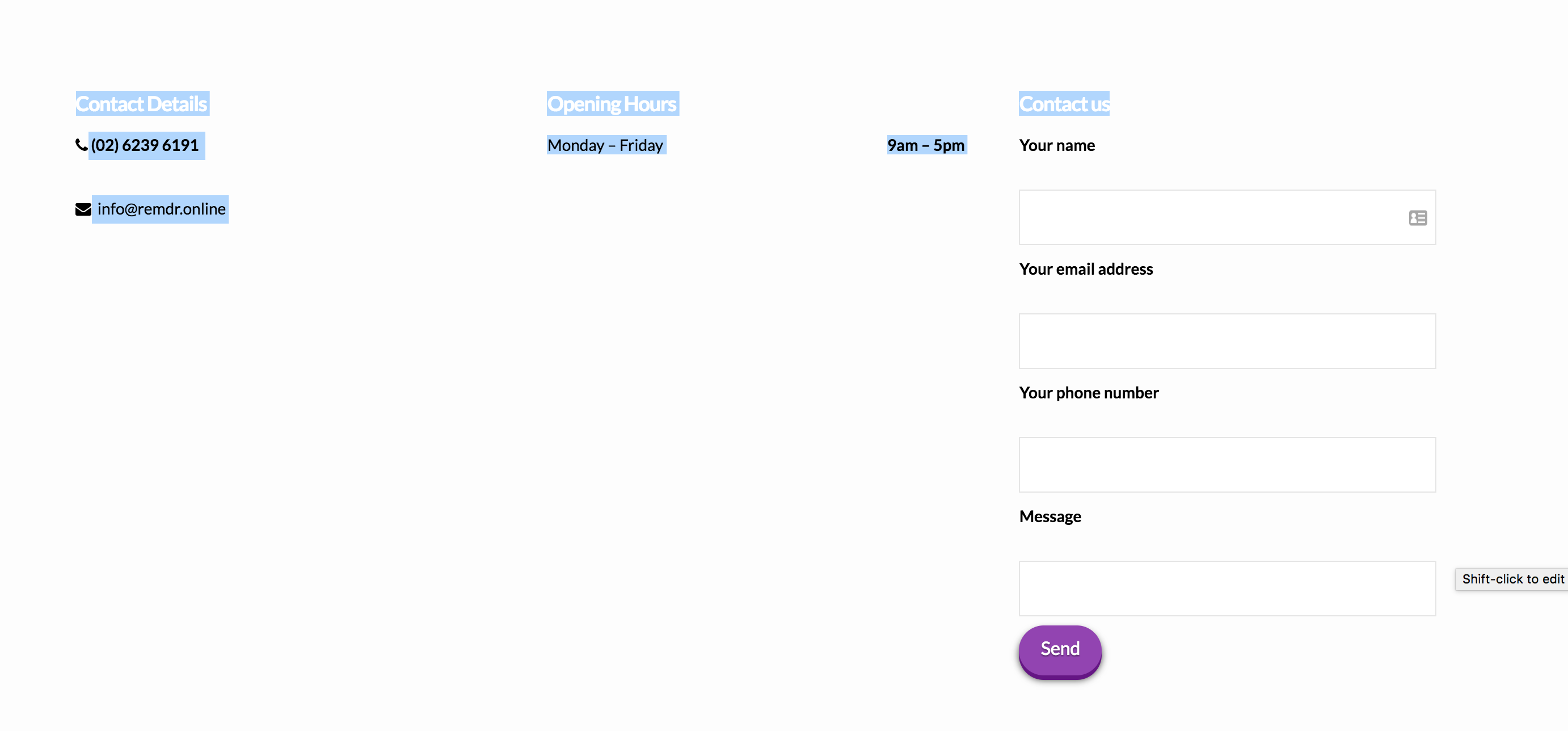 This is for site remdr.online . I have the customizer set for 3 footer widgets, this widgets itself are text based but as you’ll see on the site, there is just this blank space in the footer and not content.