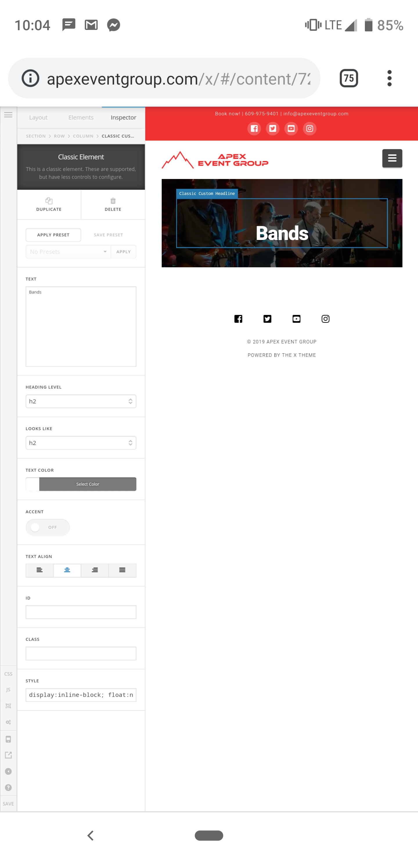 I’ve also noticed that my social media icons on the under construction page and within an element on my page are showing up as empty boxes even though I can see the icons when I select them and look in the inspector. I would like to get these icons back. Here’s a photo: